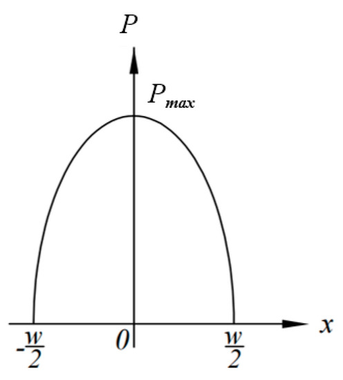 Equation (11) shows that the pressure distribution p in the model wedge p is related to V, w, h, x, and η, and the effects of h, x, and w on p are particularly significant. For a given disc rotation squeezing model, when the disc rotating speed N is constant, p is only related to x at any squeezing thickness h, showing the parabolic distribution shown in Figure 8. Figure 8 shows that, for an arbitrary h, the maximum pressure pmax can be obtained at x = 0.