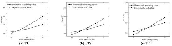 Figure 14 shows the comparison of the calculated power (P3) and experimental power for TTI, TTS, and TTT at different disc speeds.