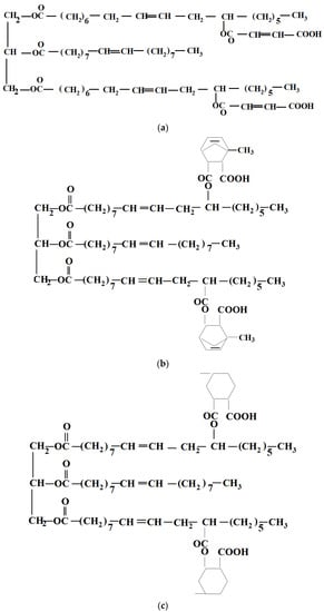 Environmentally friendly plasticizers derived from renewable resources are considered sustainable substitutes for petrochemical-based plasticizers. The use of vegetable oils as an alternative to fossil raw materials for preparing chemical products is regarded as a modern challenge from both an environmental and economic point of view. Due to their wide availability, non-toxicity and biodegradability, resistance to evaporation, and being mostly colorless and stable to light and heat, vegetable oils are a suitable alternative for phthalate plasticizers [1,2].