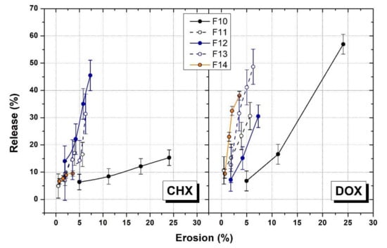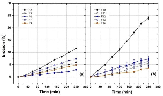 3.2. Erosion Behaviors of Gel Formulations