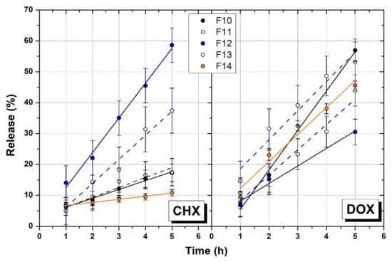 3.6. In Vitro Release Studies