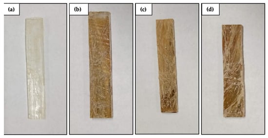 Samples for DMA testing: (a) epoxy resin; (b) 10 vol%, (c) 20 vol% fibers and (d) 30 vol% fibers.