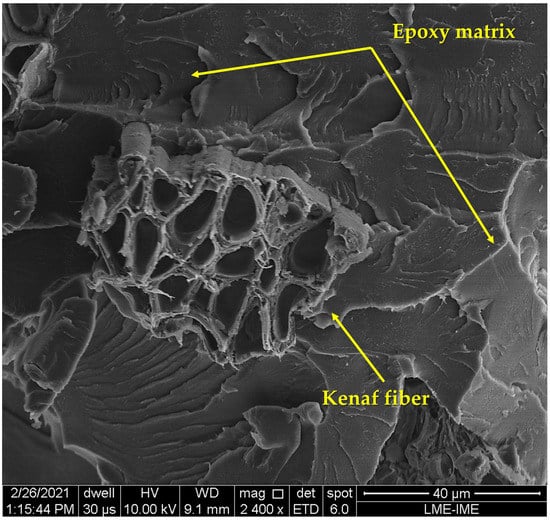 SEM micrograph illustrating a kenaf fiber in the epoxy matrix.
