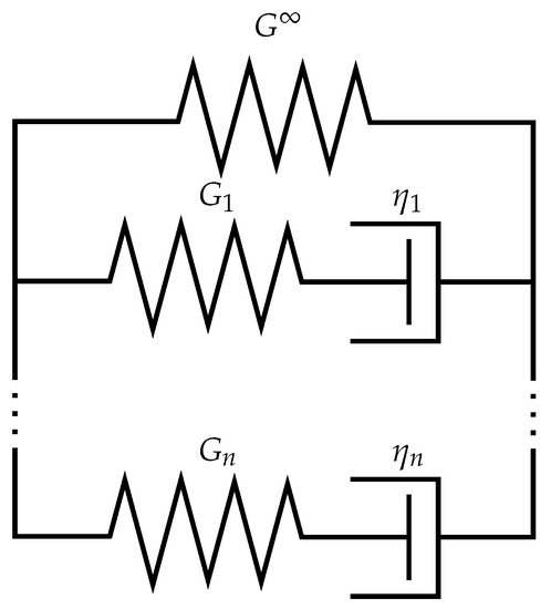 The single spring represents the time-independent long-term behaviour with the equilibrium stress . The parallel combination of n Maxwell elements captures the time dependence in the overstresses in the ith element, allowing for more realistic behaviour by the arbitrary number of elements. To incorporate temperature effects, the time–temperature analogy in form of the shift factor is applied to the Maxwell elements. Given the parallel connection of the elements,
