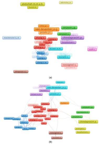 Science mapping of authors. (a) Authors with a least 25 publications; (b) connected authors based on citations.