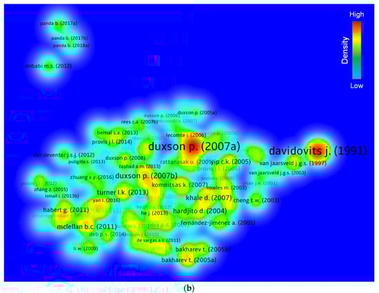 Systematic map of published documents. (a) Linked documents based on citations; (b) connected documents density.