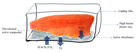 Application of various gases in modified atmosphere packaging with active absorbance in salmon product.