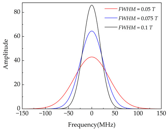 Amplitude–frequency diagram of Gaussian pulse with different FWHM.