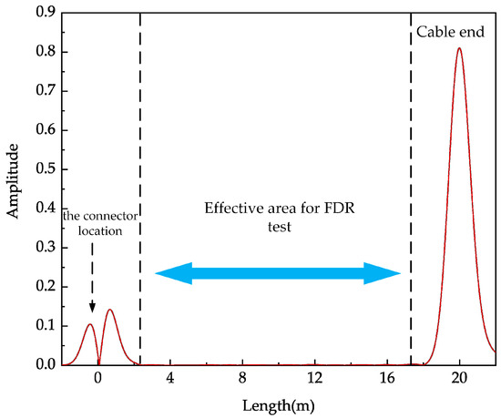 One of the non-destructive location methods is time-domain reflectometry (TDR). The TDR method relies on the propagation of an electromagnetic (EM) pulse signal inserted in the long cable. The location of the degradation is identified by analyzing the time domain characteristics of the reflected pulse [17,18]. It was found that water trees and moisture degradation in long cables can be detected accurately by the TDR test [19,20]. Before the TDR test, the pulse width of the EM signal needs to be adjusted so that the bandwidth of the signal can be included in the carrier frequency band of the cable. The carrier frequency of the power cable is related to the geometry of the cable and its length. However, when the information of the tested cable is unknown, the pulse settings need to be tried multiple times according to the operating experience, which increases the difficulty of the TDR test.