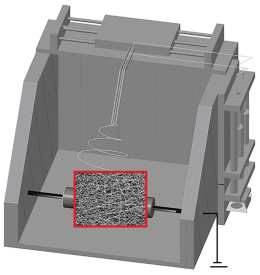 Nascent ultrafine fibrous FEP/PVA membranes were fabricated using a typical electro-spinning setup (Yizheng Wanjia Industrial Co., Ltd., Changsha, China) (Figure 1). Basically, the prepared FEP/PVA electro-spinning solution in a tube was pushed slowly into high-voltage-charged sprayers by a syringe pump with a speed 0.06 mL/h. A direct current voltage of 20 kV was applied across a distance of 15 cm between the tip of the sprayers and the grounded rotating collector which was covered by aluminum foil with a speed of 1000 rpm. During the process, ultrafine fibers were produced and collected on the rotating collector. The nascent ultrafine fibrous FEP/PVA membranes were carefully separated from the aluminum foil after steadily spinning for 4 h. Subsequently, membranes were placed in a drying oven under vacuum condition at 60 °C for over 12 h to ensure desiccation.