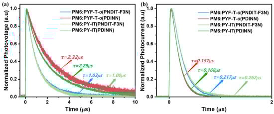 TPV (a) and TPC (b) decays of the PM6:PYF-T-o and PM6:PY-IT-based devices.
