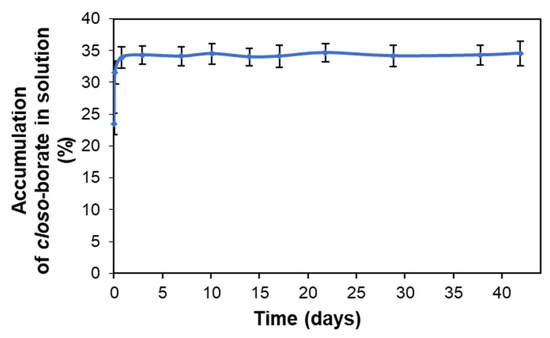 Release of closo-borate from polymer composite containing both CB adsorbed on the surface and dispersed in the bulk of the material (according to 11B NMR spectroscopy).