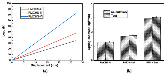 (a) Load–displacement curves of PMCHSs and (b) comparison of calculated and experimental spring constants.