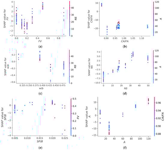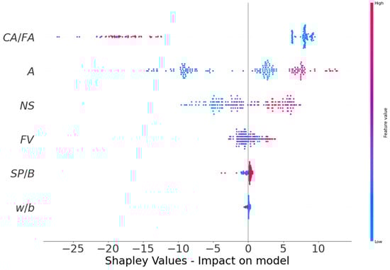 - SHAP analysis revealed that coarse aggregate to fine aggregate ratio (CA/FA) had a stronger adverse correlation with FRNSC’s CS. Whereas specimen age had a positive impact on FRNSC CS and nano-silica (NS), fiber volume (FV), and superplasticizer to binder ratio (SP/B) had both favorable and detrimental effects on the CS of FRNSC. Using NS, FV, and SP/B within the optimum limits enhances the CS, while their usage in lower and higher concentrations may cause deterioration of CS.