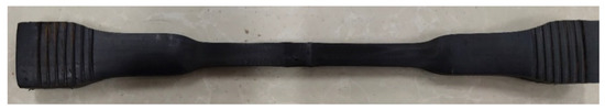 When the welding bead was removed, the specimen necked in the welding seam and the base material, as shown in Figure 6. The reason was that there was no welding bead to strengthen the joint. This phenomenon was quite different from the specimen with the welding bead, as shown in Figure 4a. Therefore, the creep failure of the specimen was affected by the welding bead.