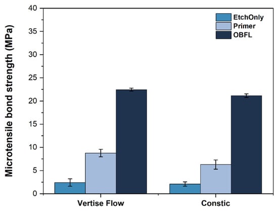3.1. Microtensile Bond Strength of Composite–Dentin Interfaces