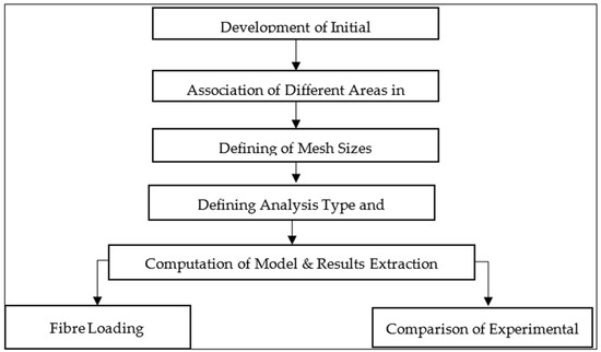 This study has been built based on an experimental work which has been achieved in the last period and published [45,46]. The Finite Element Method (FEM) was introduced in 1956. It is considered a powerful computational tool for the estimation of solutions to problems faced in real-life engineering. Physical phenomena occur in a continuum of matter ranging from solid to gas, subject to field variables. These field variables usually vary between points, and they possess a finite number of solutions within that domain. By using this tool, the problems are simplified by converting the whole domain into a finite number of pieces or elements. An approximate function could be associated with the unknown field variables. Modelling of thermal can be carried out by using FEM programs such as ANSYS [45]. In this research, ANSYS was used to analyse conductive heat transfer through fibre composite bodies. A number of practical heat transfer problems require the use of numerical methods, which allow problems to be solved quickly. The effect of changes in parameters can often be seen when a problem is modelled numerically. A numerical formulation can also be performed by using partial differential equations. These equations are replaced by discrete approximations, such as temperature fields that are approximated by the values at discrete points. As a result, a computational mesh is formed (in Cartesian or cylindrical coordinates), and the field is considered at consecutive time steps with a time increment Δt [47]. This type of modelling of a cylindrical composite is explained in this chapter. In Figure 1, the flow of the numerical programmer of a cylindrical model is summarised.