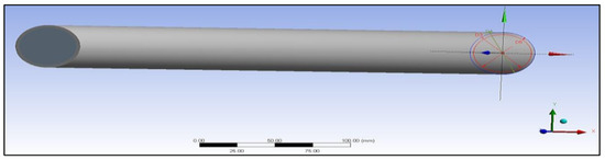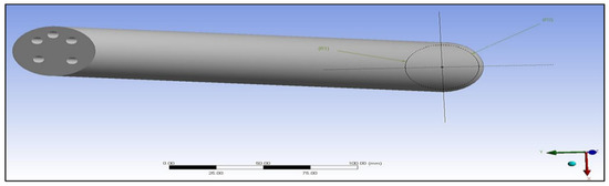 The preliminary shapes of models and fibres were made by providing information about the elements and related material. The thermal properties of the three materials of composite cylinders are also given in Table 1. The geometries created are shown in Figure 5, Figure 6, Figure 7, Figure 8, Figure 9 and Figure 10, such as the initial model of a gypsum cylinder without sisal fibres and the modelling of the extruded sisal-glass fibres, and the simple model of a composite cylinder with surface points of fibres places.