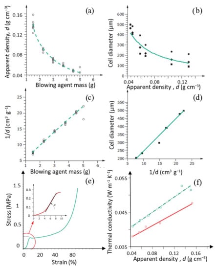 - Hawkins, M.C.; O’Toole, B.; Jackovich, D. Cell Morphology and Mechanical Properties of Rigid Polyurethane Foam. J. Cell. Plast. 2005, 41, 267–285. [Google Scholar] [CrossRef]