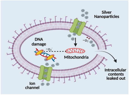 Indeed, AgNPs’ excellent antimicrobial properties have already been tested against 650 bacterial strains [32,33,34]. Because of their extensive antimicrobial properties and ability to reduce the chance of infection from antibiotic-resistant strains, silver nanoparticles also found their application in wound management products [35,36,37,38,39]. AgNPs are utilized in wound care to prevent secondary infections since they are effective against a spectrum of microbes that can slow down the healing process [40]. Their size and charge allow them to enter microorganisms [41,42,43]. The AgNPs destroy many multi-resistant strains. It also helps rid pathogenic microbes that can slow or stop the typical stages of wound healing [44,45].