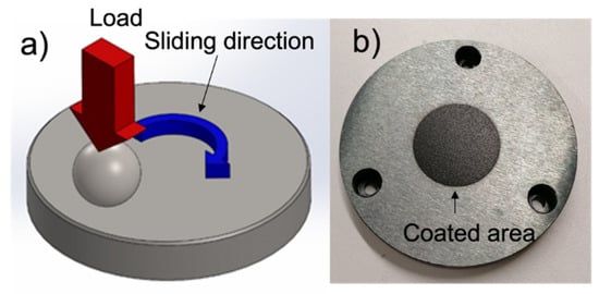 Schematic of tribological pin-on-disk contact (a) and a tribological specimen coated (b).