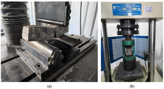 Furthermore, according to the specification GB/T50448 for cement-based grinding materials [42], a 40 mm × 40 mm × 160 mm UHPC-GJL prismatic test block was made and the compression test was carried out after curing. The test process and material parameters are shown in Figure 4 and Table 3.