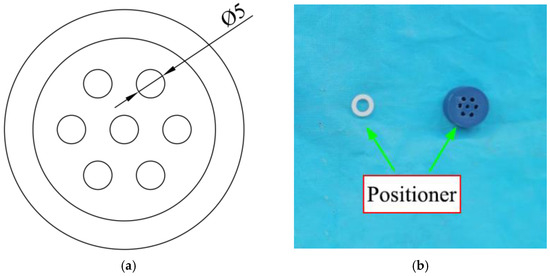 CFRP strand positioning device. (a) Locator design; (b) physical map of the locator.