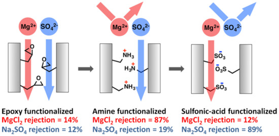 Membrane rejection properties based on surface functionalization. Provided with permission from American Chemical Society [140].