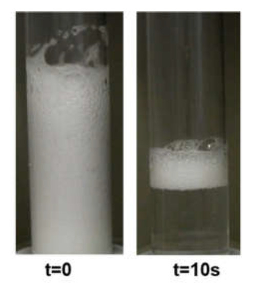 - Pugh, R.J. Foaming, foam films, antifoaming and defoaming. Adv. Colloid Interface Sci. 1996, 64, 67–142. [Google Scholar] [CrossRef]