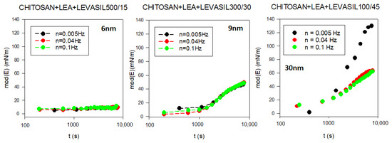Evolution of the surface dilational elasticity module in chitosan—LAE—Levasil® mixtures (depending on the type of Levasil® used).