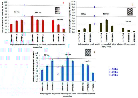 - Marquisette fabric and small sandfly net composites possess high energy absorption factor than the other composites due to higher deflection in the composites for the given load. The reason is due to the lesser cement fabric bonding.