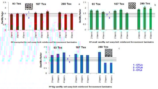 - All the warp knitted reinforced ferrocement composites has improved ductility factor compared to conventional chicken mesh reinforced ferrocement composites When using chicken mesh the corrosion factor is the main drawback, so replacing it with warp knitted fabrics enhances corrosion resistance.