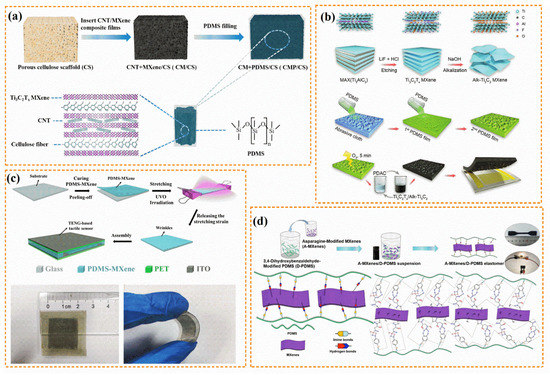 - Zhang, K.; Sun, J.; Song, J.; Gao, C.; Wang, Z.; Song, C.; Wu, Y.; Liu, Y. Self-healing Ti3C2 MXene/PDMS supramolecular elastomers based on small biomolecules modification for wearable sensors. ACS Appl. Mater. Interfaces 2020, 12, 45306–45314. [Google Scholar] [CrossRef] [PubMed]
