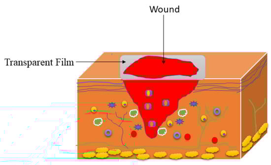 Films are wound dressing scaffolds fabricated to permit the diffusion of carbon dioxide, oxygen, and water vapour from the injury, and are useful for autolytic removal of damaged tissues from the wounds [89,90]. These scaffolds exhibit several interesting properties that make them useful in the field of wound dressing, including high flexibility and elasticity leading to their ability to be altered to any shape of interest, and they do not need any additional tapping. Furthermore, the wound can be assessed during wound recovery by removing the films because of their transparency (Figure 4), thus avoiding discomfort in a patient [91]. Film wound dressings are appropriate for shallow, epithelizing, and superficial lesions that have low exudates. Films that are based on gellan gum have been reported as potential wound dressing scaffolds. Ismail et al. prepared gellan gum films incorporated with titanium dioxide nanoparticles using the evaporative casting method for wound dressing applications [92]. The antibacterial studies showed the inhibition zone of TiO2 nanoparticle-loaded biofilm was 9 ± 0.25 mm and 11 ± 0.06 mm, against S. aureus and E. coli, respectively, which was good antibacterial activity while the plain films did not show any antibacterial effects. The in vivo wound healing experiments on Sprague-Dawley (SD) rats revealed a complete wound closure of 92% for TiO2 nanoparticle-loaded biofilms whereas this was only 80% for gellan gum biofilm on the 14th day, suggesting that TiO2 nanoparticle-loaded biofilms possess the highest wound closure rate than the pristine gellan gum film [92]. Furthermore, the TiO2 nanotube-incorporated gellan gum films prepared by Razali et al. exhibited excellent biocompatibility against 3T3 mouse fibroblast cells and resulted in the accelerated wound healing process of the open excision type lesions in the SD rat model [93].