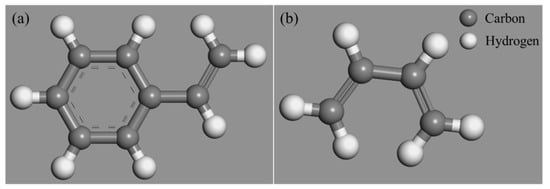 Monomer molecular models: (a) styrene; (b) 1,3-butadiene.