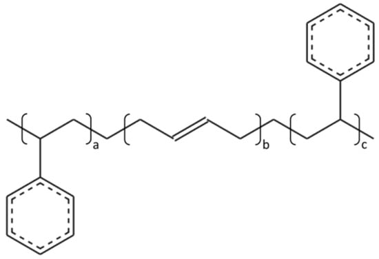 The linear SBS, derived from styrene and 1,3-butadienem (Figure 3), was used in this research, whose molecular formula and molecular model are shown in Figure 4 and Figure 5.