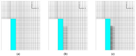 Three meshes used in the simulations: (a) basic mesh; (b) mesh 2; (c) mesh 3.