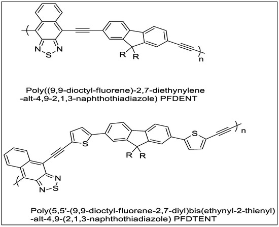 2.3.10. Poly(5,5’-(9,9-dioctyl-fluorene-2,7-diyl)bis(ethynyl-2-thienyl)-alt-4,9-(2,1,3-naphthothiadiazole)PFDTENT [36]