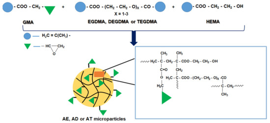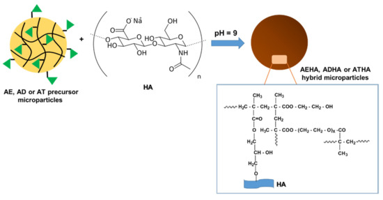 - The increase in the values of the adsorption band area at 1151 cm−1 in the case of the hybrid microparticles is due to the formation of new ether bonds by grafting HA to the epoxy groups from the GMA structure;