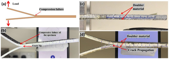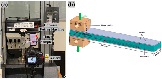 - Reeder, J.R.; Demarco, K.; Whitley, K.S. The use of doubler reinforcement in delamination toughness testing. Compos. Part A Appl. Sci. Manuf. 2004, 35, 1337–1344. [Google Scholar] [CrossRef]