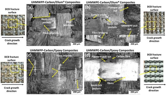 - Bhudolia, S.K.; Perrotey, P.; Joshi, S.C. Mode I fracture toughness and fractographic investigation of carbon fibre composites with liquid Methylmethacrylate thermoplastic matrix. Compos. Part B Eng. 2018, 134, 246–253. [Google Scholar] [CrossRef]