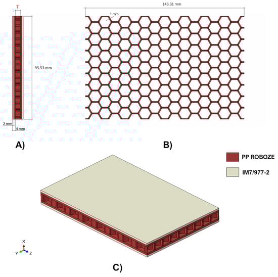 As demonstrated in the literature [], this approach is particularly advantageous for structures relegated to the dissipation of impact energy as it allows for the combination of the ability to absorb energy in plastic form by the polymeric core with the high stiffness-to-weight and strength-to-weight ratios of composite external skins.