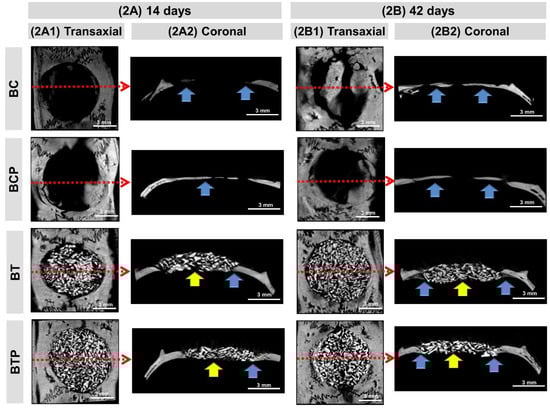 | Bone volume (BV, mm3) | 14 | 2.93 ± 1.43 aA | 3.02 ± 0.71 aA | 17.76 ± 3.52 bA | 19.88 ± 5.47 bA |