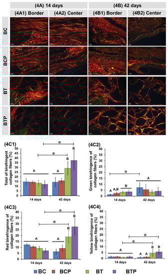 - Nogueira, D.M.B.; de Faria Figadoli, A.L.; Alcantara, P.L.; Pomini, K.T.; German, I.J.S.; Reis, C.H.B.; Júnior, G.M.R.; de Oliveira Rosso, M.P.; da Silva Santos, P.S.; Zangrando, M.S.R.; et al. Biological Behavior of Xenogenic Scaffolds in Alcohol-Induced Rats: Histomorphometric and Picrosirius Red Staining Analysis. Polymers 2022, 14, 584. [Google Scholar] [CrossRef]