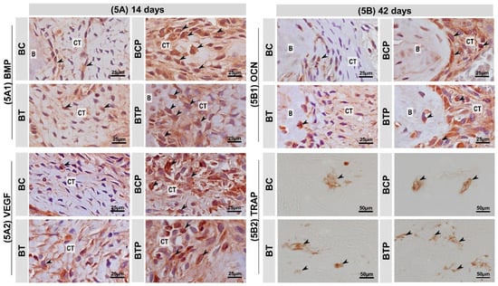 3.5. Immunolabelling Findings for BMP—2/4, VEGF, OCN and TRAP