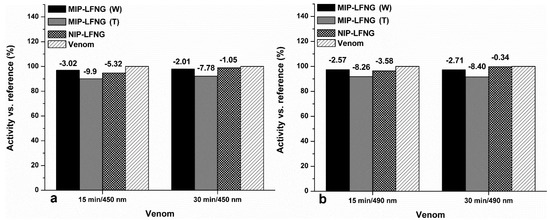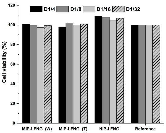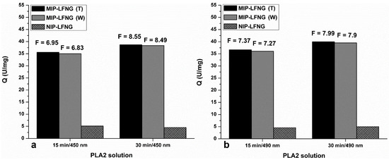 | MIP-LFNG (T) | 75/25 | 87.5:12.5 | 3 | 5.11 | 1/5 (PLA in TRIS/HCl) |