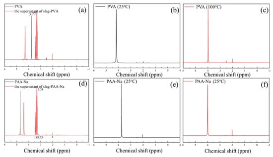 Liquid-state 1H NMR spectrum of (a) PVA; (b) PVA (25 °C); (c) PVA (100 °C); (d) PAA-Na; (e) PAA-Na (25 °C); (f) PAA-Na (100 °C).