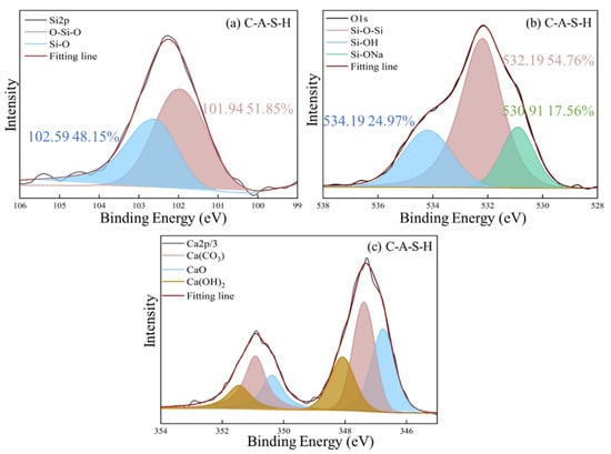 The XPS deconvolution spectrum of (a) Si 2p, (b) O1s XPS, (c) Ca 2p/3 of C-A-S-H/KH550.