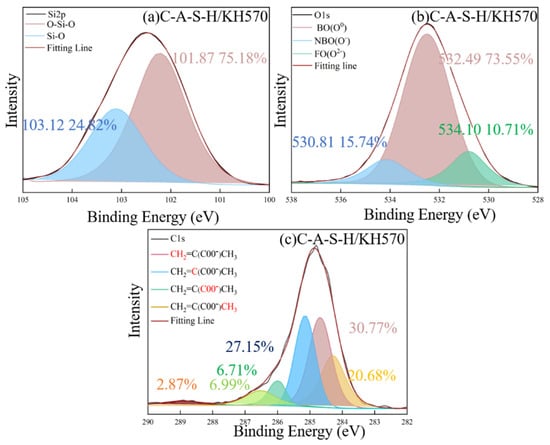 The XPS deconvolution spectrum of (a) Si 2p, (b) O1s, (c) Ca 2p/3 of C-A-S-H/KH570.