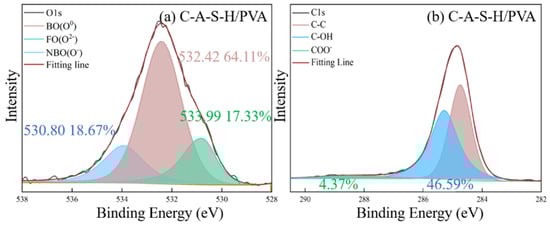 (a) The XPS deconvolution spectrum of the O1s and (b) C1s of C-A-S-H/PVA.